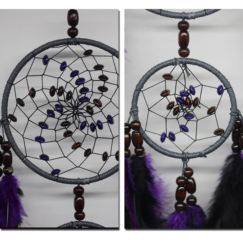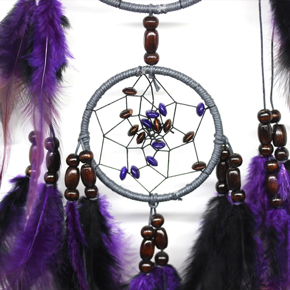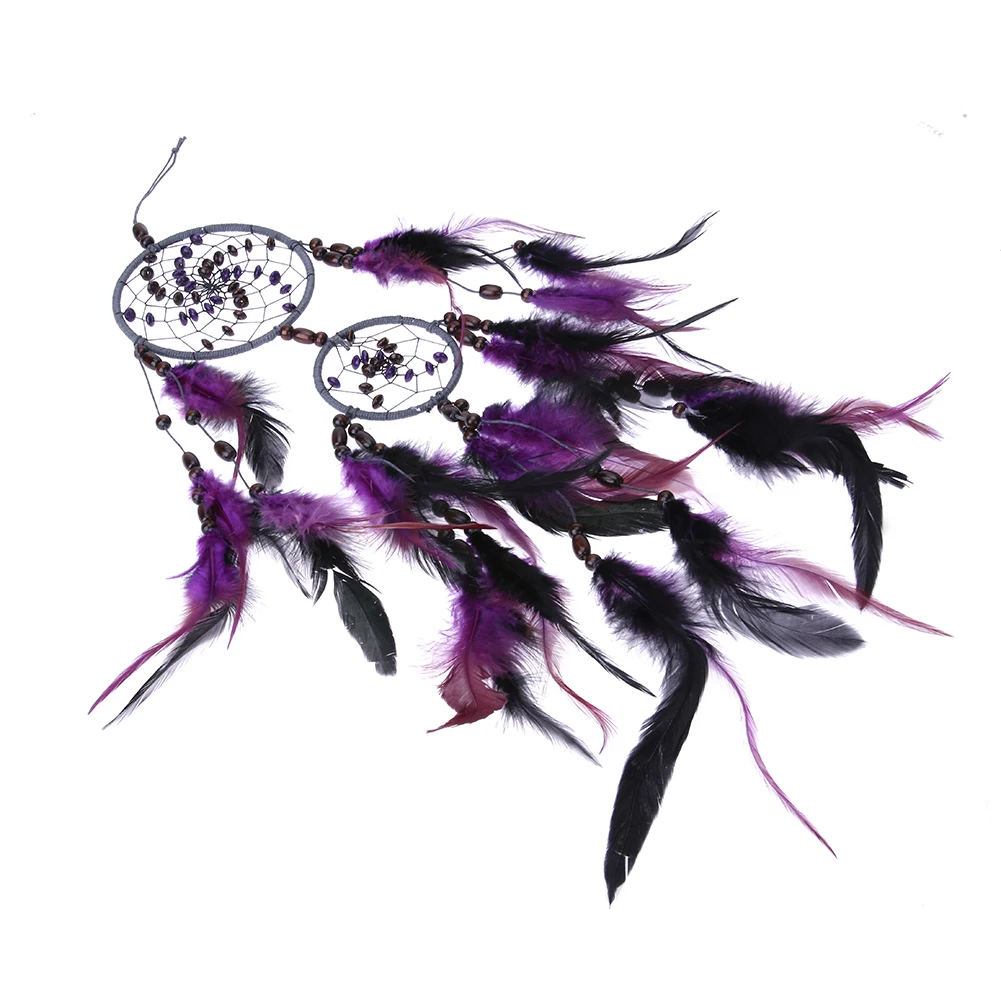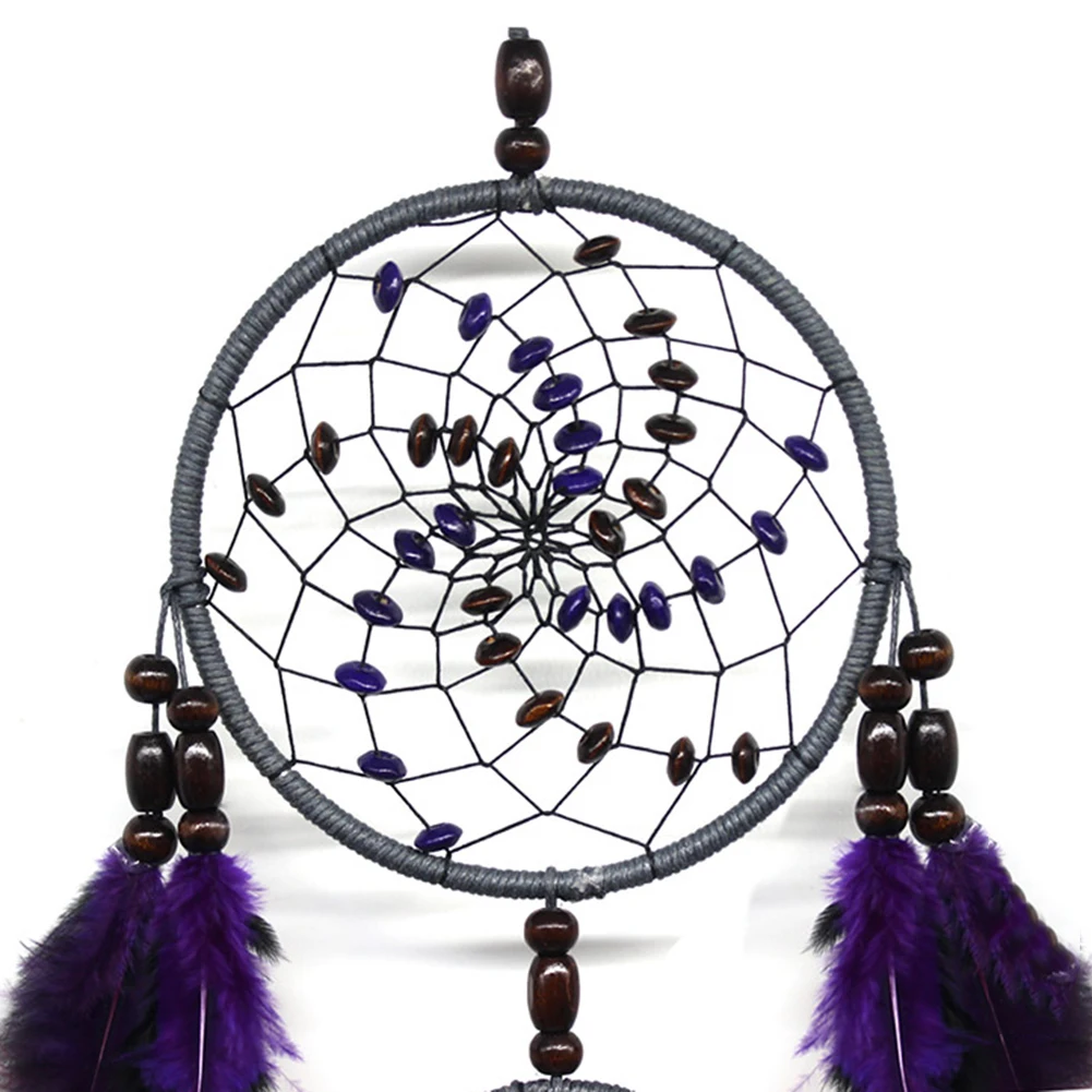 Feather Crafts Purple Dream Catcher Wind Chimes Handmade Indian Dreamcatcher Net for Wall Hanging Car Home Decor